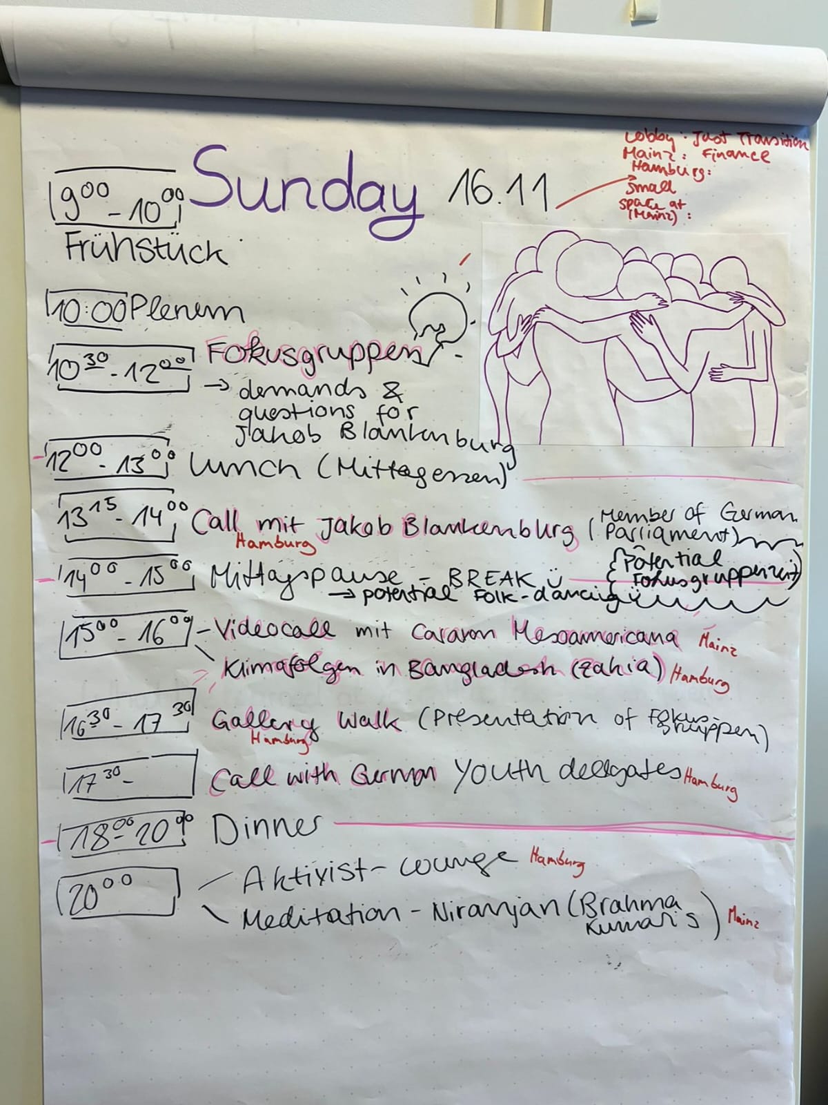 Untergebracht waren wir in der Jugendherberge Berlin Ostkreuz. Auf dem Gelände befinden sich mehrere Konferenzräume, in denen die Workshops und Diskussionen stattgefunden haben. Besonders spannend waren die Gespräche über „Loss and Damage“ im Zusammenhang mit dem Klimawandel sowie darüber, dass wichtige internationale Vereinbarungen wie das Klimaabkommen von Paris oft nicht ausreichend eingehalten werden.