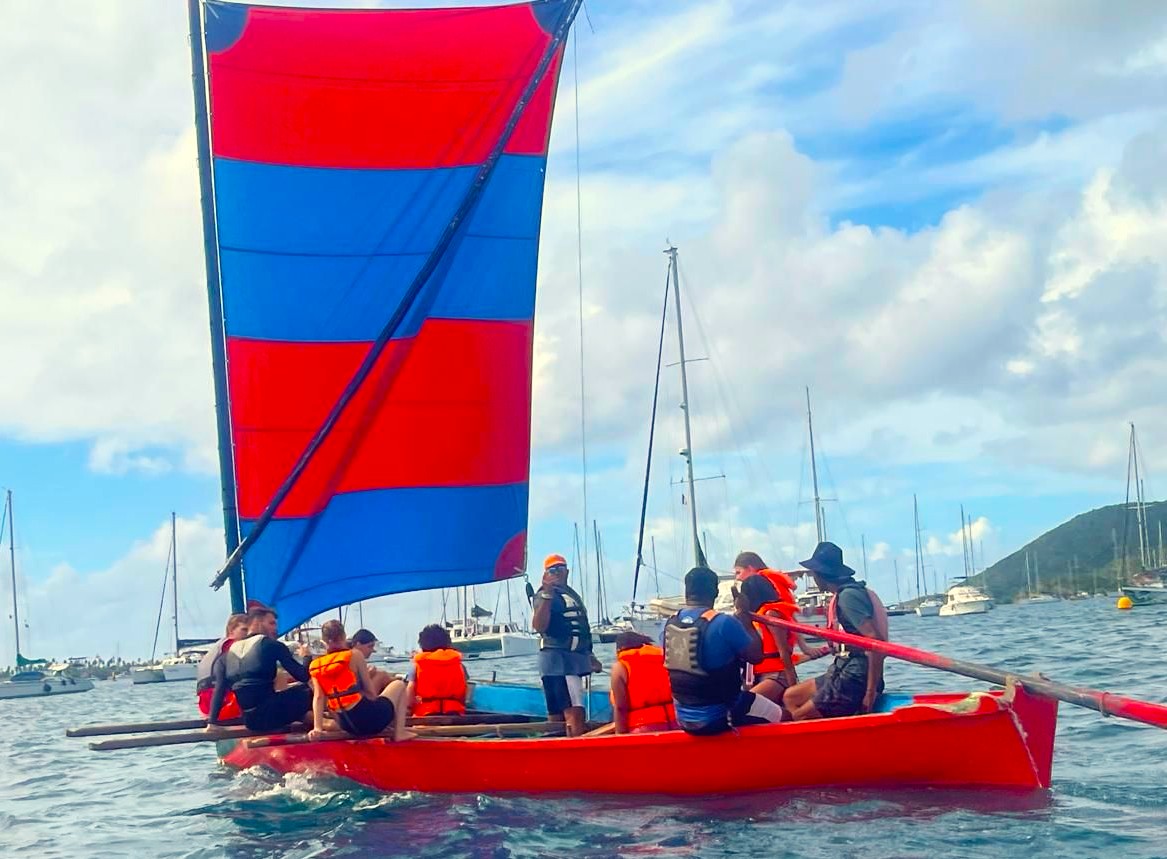 Um zum Urlaubsfeeling auch die Insel und ihre Traditionen kennenzulernen, waren wir am Mittwoch mit der Schule zusammen unterwegs. Mit dem Bus ging es in Richtung Süden der Insel. Dort haben wir gelernt, Yole zu fahren. Das ist ein typisches, traditionelles Segelboot von Martinique. Um das Boot auszubalancieren, muss man auf Holzstäben, die am Boot verhakt sind, sein Gewicht so verlagern, dass das Boot im Gleichgewicht bleibt.