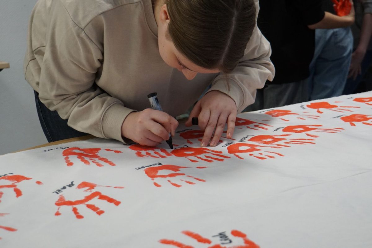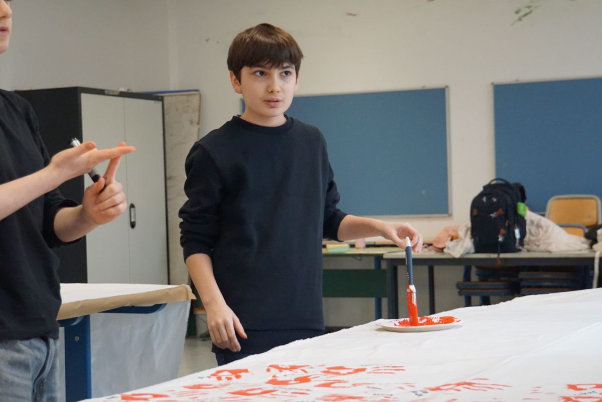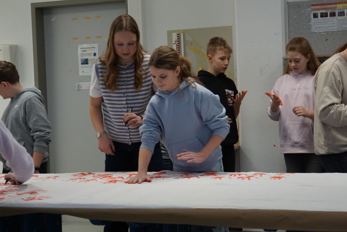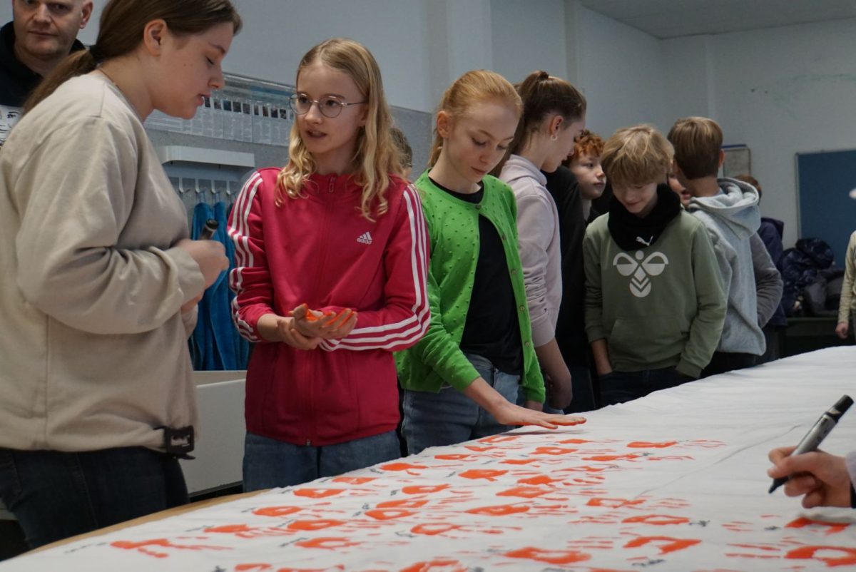 Auch in diesem Jahr hatten Schülerinnen und Schüler aller Jahrgangsstufen die Möglichkeit, freiwillig an der Aktion teilzunehmen. Mit jedem roten Handabdruck wurde ein sichtbares Zeichen gesetzt: gegen den Missbrauch von Kindern in bewaffneten Konflikten und für den Schutz ihrer Rechte. Die im Rahmen der Veranstaltung gesammelten Handabdrücke werden voraussichtlich im Mai an den Bundestagsabgeordneten Johann Saathoff übergeben, der das Max besuchen wird. Mit dieser Übergabe soll die Forderung nach einem konsequenten Einsatz gegen den Missbrauch von Kindern als Soldaten auch auf politischer Ebene unterstrichen werden.