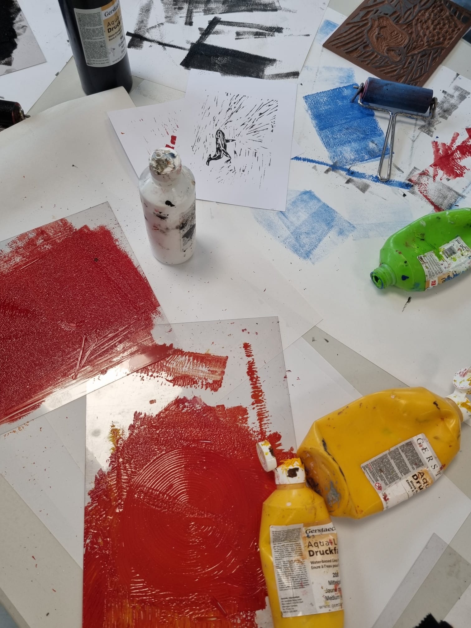 Die Schüler:innen der 8b und 8c haben die Technik des Linolschnitts im Kunstunterricht erprobt. Dabei durften sie sich Naturmotive als Vorlage aussuchen, diese auf Linolplatten übertragen und anschließend ausschneiden und drucken. Am Ende sind wirklich tolle Drucke entstanden.