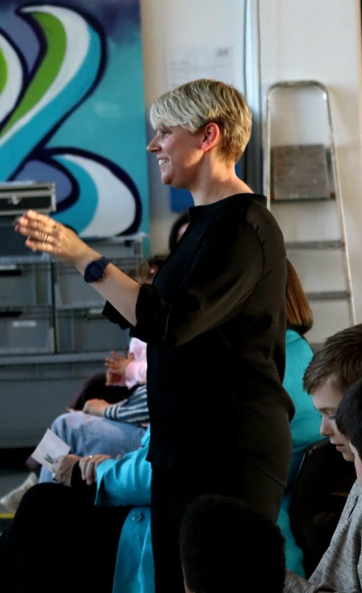 Nach der Pause fing die AG „Singen!“ erneut an und musizierte unter der Leitung von Frau Krüp die Songs „Demokratie“ und „Was du Liebe nennst“. Dann folgte ein gemeinsames Stück von der