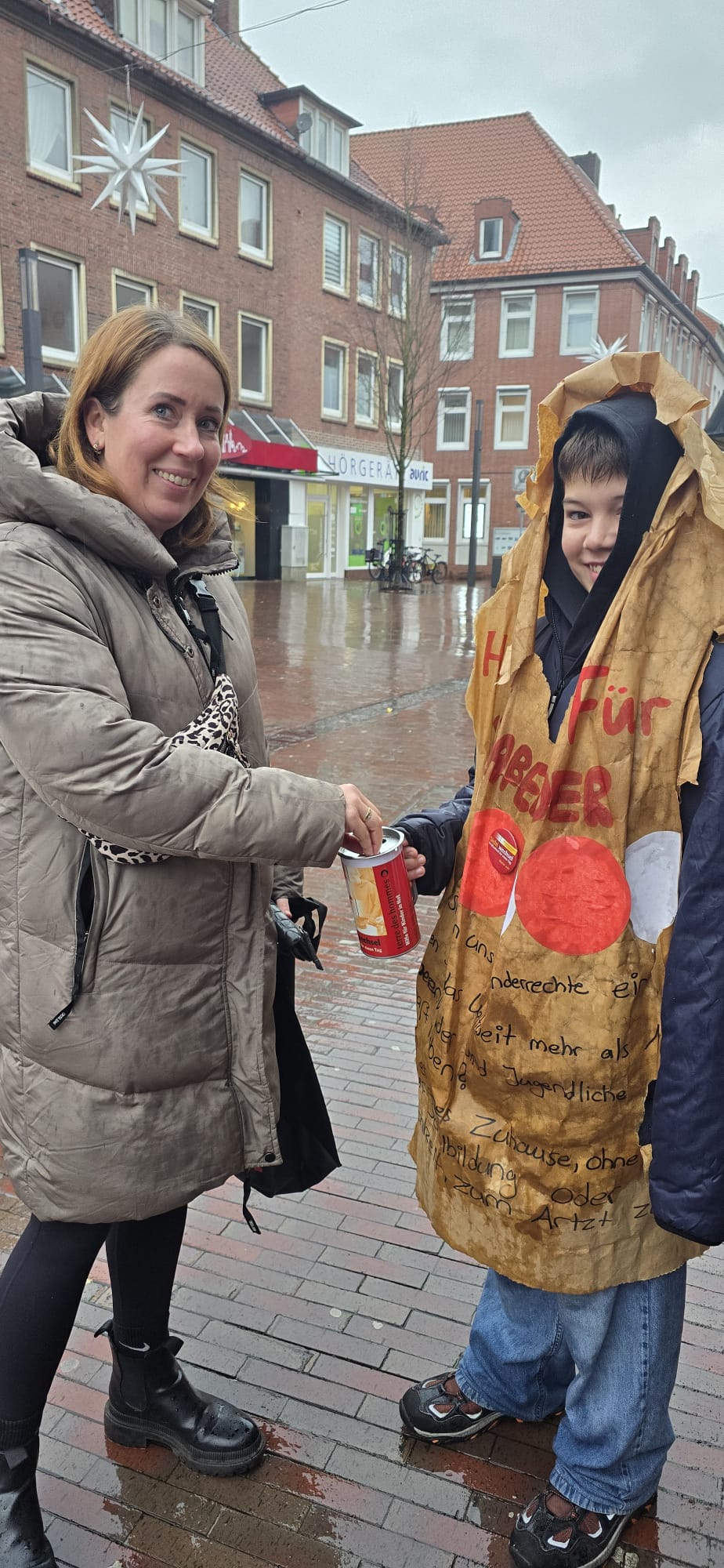 Die Schülerinnen und Schüler der Klasse 7a haben einen besonderen Perspektivwechsel erlebt: Kurz vor Weihnachten schlüpften sie einen Tag lang in die Rolle von Straßenkindern und verkauften kleine Gegenstände aus dem Bauchladen oder boten Schuhputzarbeiten an. Auf diese Weise sammelten sie Spenden für Kinder, die ihren Lebensunterhalt tatsächlich durch solche Tätigkeiten bestreiten müssen.