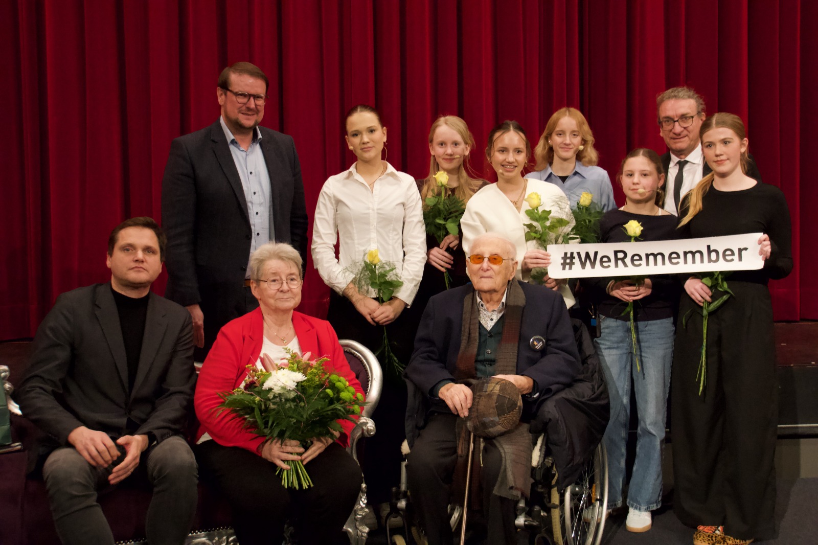 Bereits am 16.01.2026 unterstützte auch der Holocaust-Überlebende Albrecht Weinberg die Aktion #WeRemember gemeinsam mit Gerda Dänekas, Nicolas Büchse sowie Oberbürgermeister Tim Kruithoff. Darüber hinaus nahm Albrecht Weinberg zusammen mit Rieke Götemann, Lale Trieschmann, Deike Meige, Lea Gerdhabing, Riemke Langer, Nia Ysker und Kai Gembler an der Aktion teil und setzte damit ein starkes Zeichen des Erinnerns.