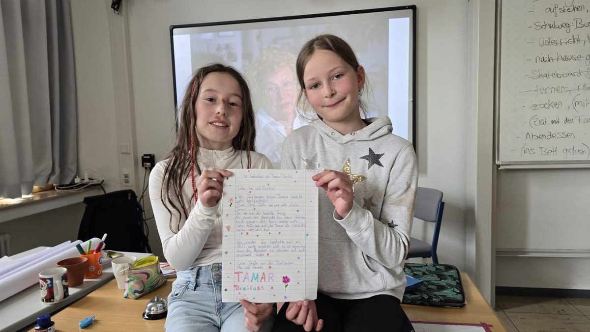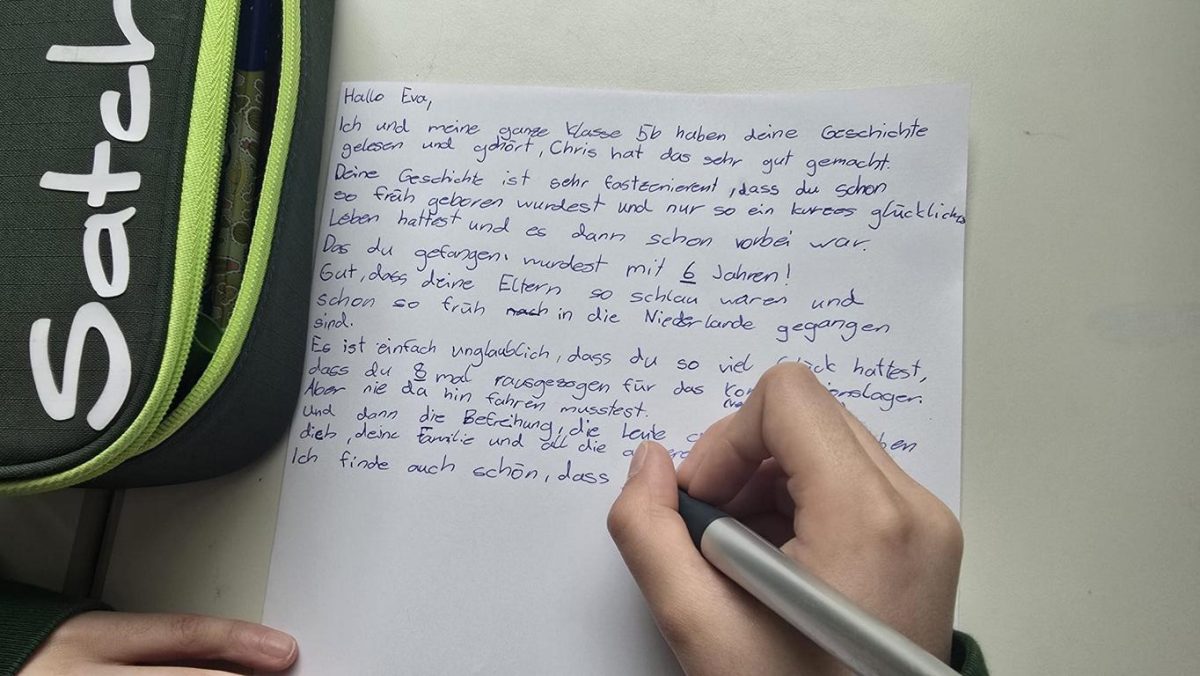 Einen ganzen Vormittag lang hatten die Schülerinnen und Schüler der Klassen 5b und 5d die Gelegenheit, die Zweitzeugen Chris Zeevaert und Julie Wildschutz bei uns am Max-Windmüller-Gymnasium zu erleben. In eindrucksvoller Weise vermittelten sie die Lebens- und Überlebensgeschichten von Tamar Dreifuss und Eva Weyl. In der intensiven Auseinandersetzung mit den Schicksalen dieser beiden Überlebenden der Shoa wurden die Schülerinnen und Schüler selbst zu Zeitzeuginnen und Zeitzeugen – ganz im Sinne des Holocaust-Überlebenden und späteren Friedensnobelpreisträgers Elie Wiesel, der einmal sagte: „Wer einmal einem Zeugen zuhört, wird selbst zu einem.“